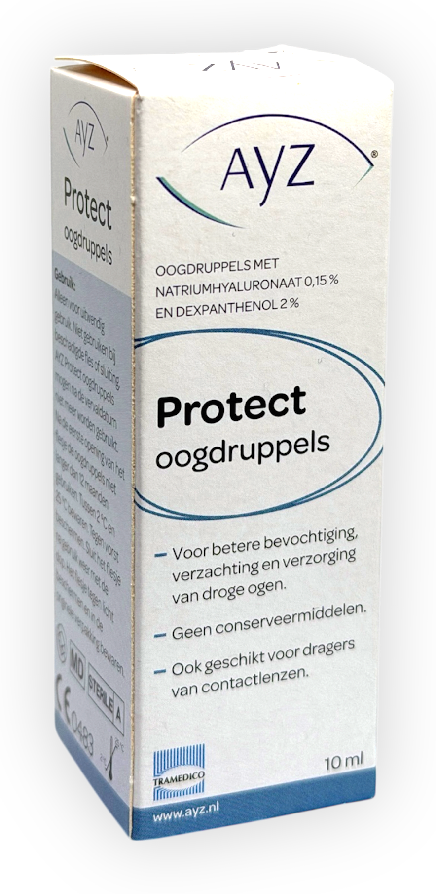AYZ Protect bevat naast natriumhyaluronaat ook 2% dexpanthenol. Dexpanthenol beschermt het oogoppervlak waardoor dit in staat wordt gesteld zich te helen. AYZ Protect bevat natriumhyaluronaat 0,15%, dexpanthenol 2% en daarnaast natriumchloride, natriumcitraat, citroenzuur, en steriel water.